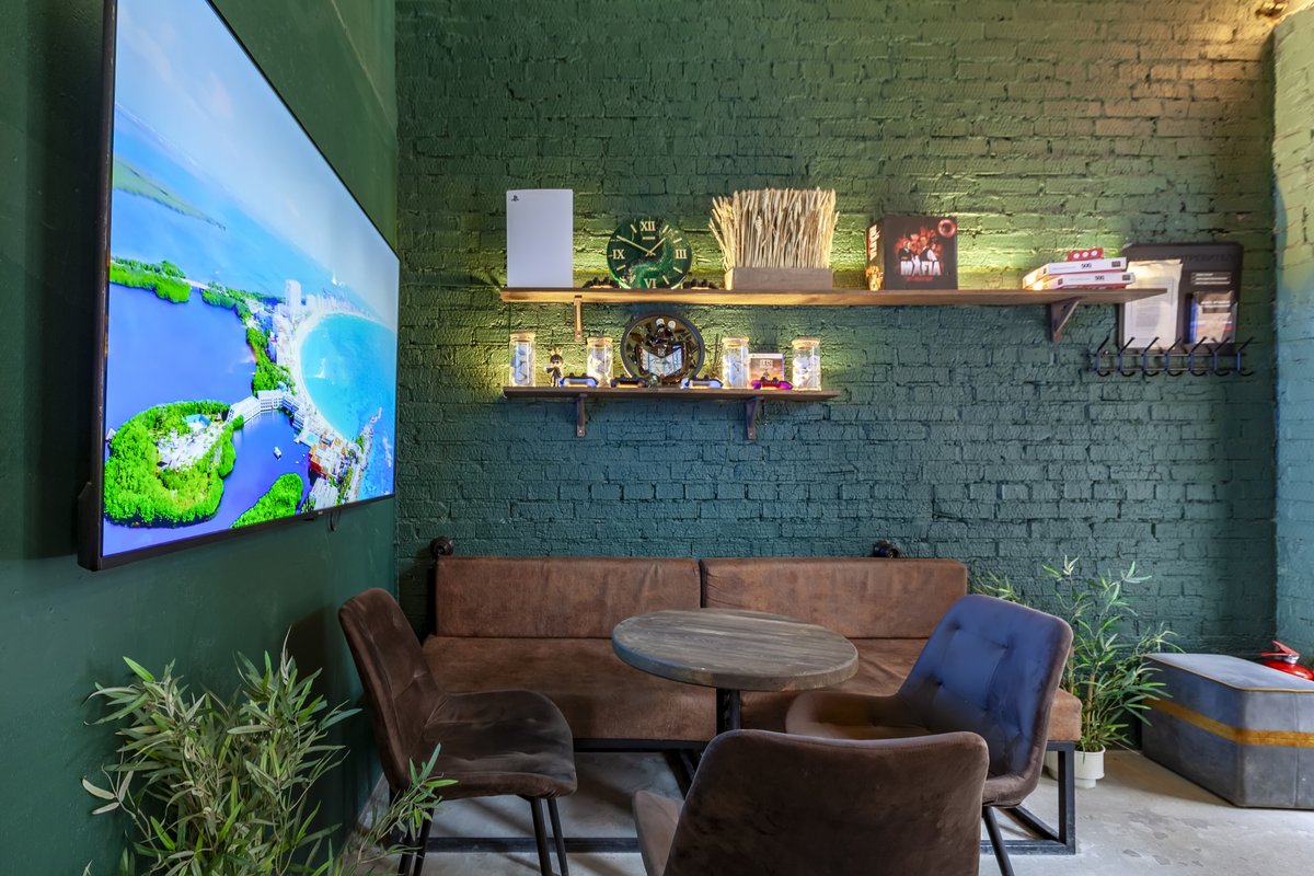 У нас работает Wi-Fi - всё к вашим услугам. Кроме того, здесь вы можете расслабиться с кальянной трубкой в руках и весело провести время за настольными играми.